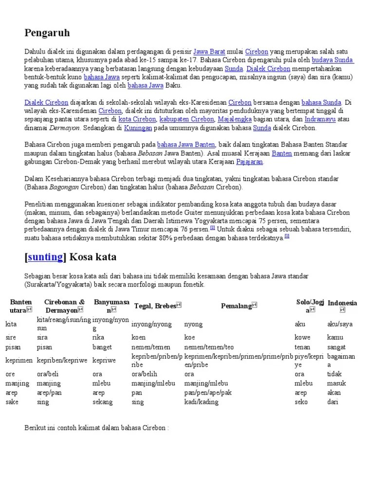 Bahasa jawa indramayu sedikit belajar bahasa indramayu mangan = makan nginung = minum ngeleg = menelan wareg = kenyang ngeli = pengen Nah, skrinshot kiyen pemahaman sing bagus, pola pikire maju. Bahasa jawa indramayu sedikit belajar bahasa indramayu mangan = makan nginung = minum ngeleg = menelan wareg = kenyang ngeli = pengen Dalam keseharian, bahasa sunda menjadi tuturan mereka. Artinya, ketika perda dibuat hanya dalam lingkup wilayah jabar, cirebon tidak.